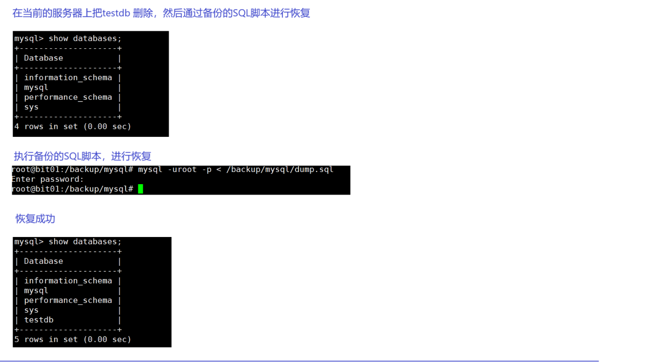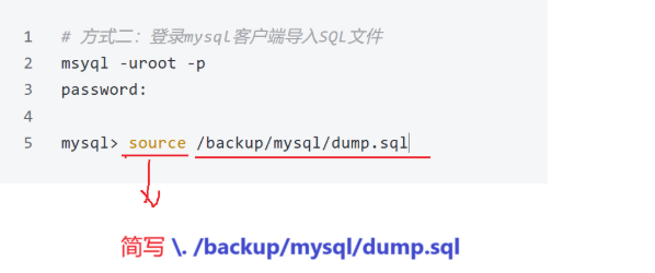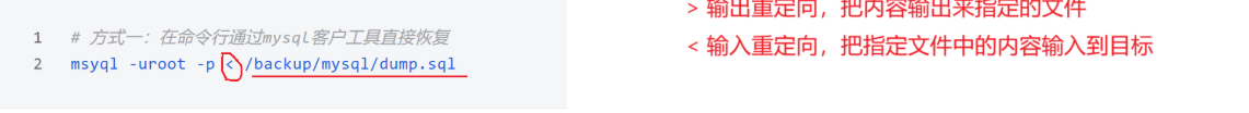 # ⽅式⼀:在命令⾏通过mysql客⼾⼯具直接恢复