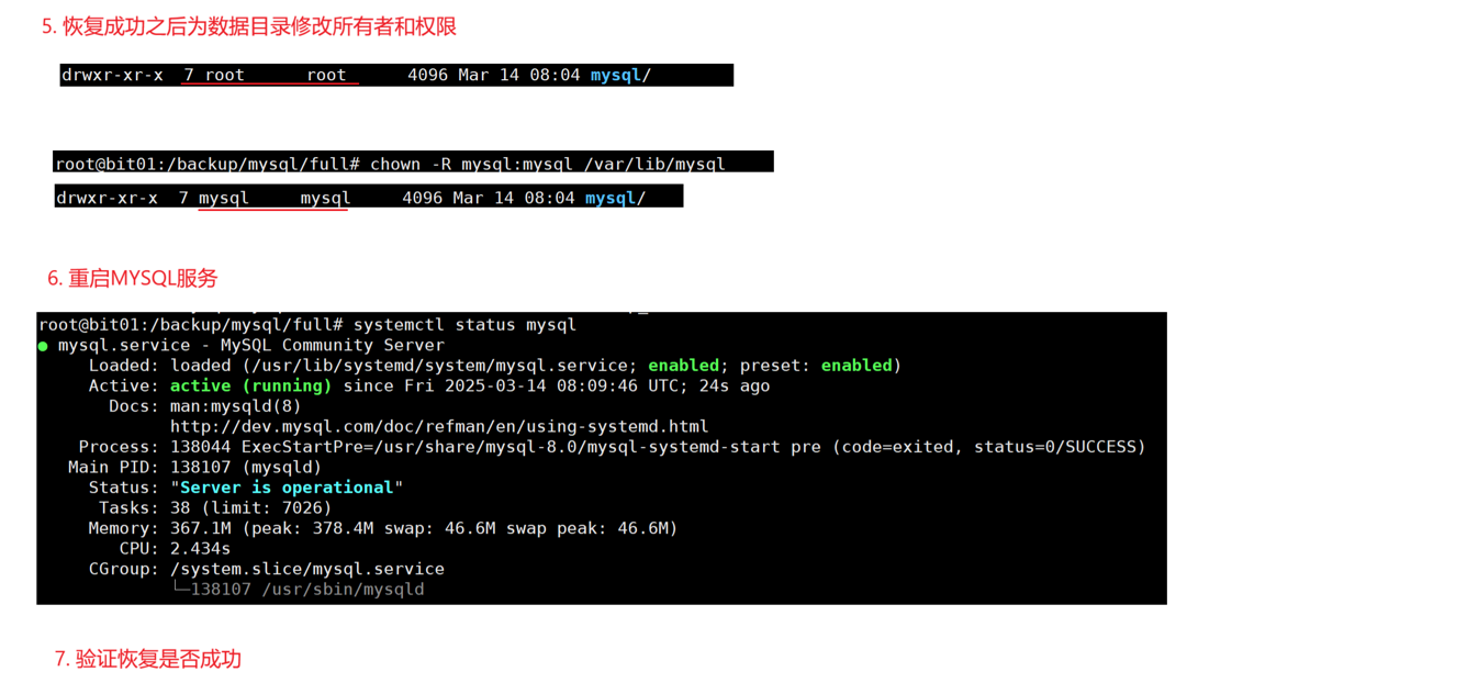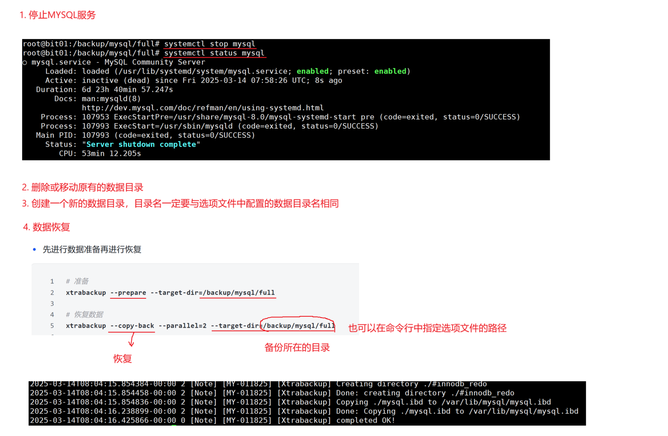 xtrabackup --copy-back --parallel=2 --target-dir=/backup/mysql/full