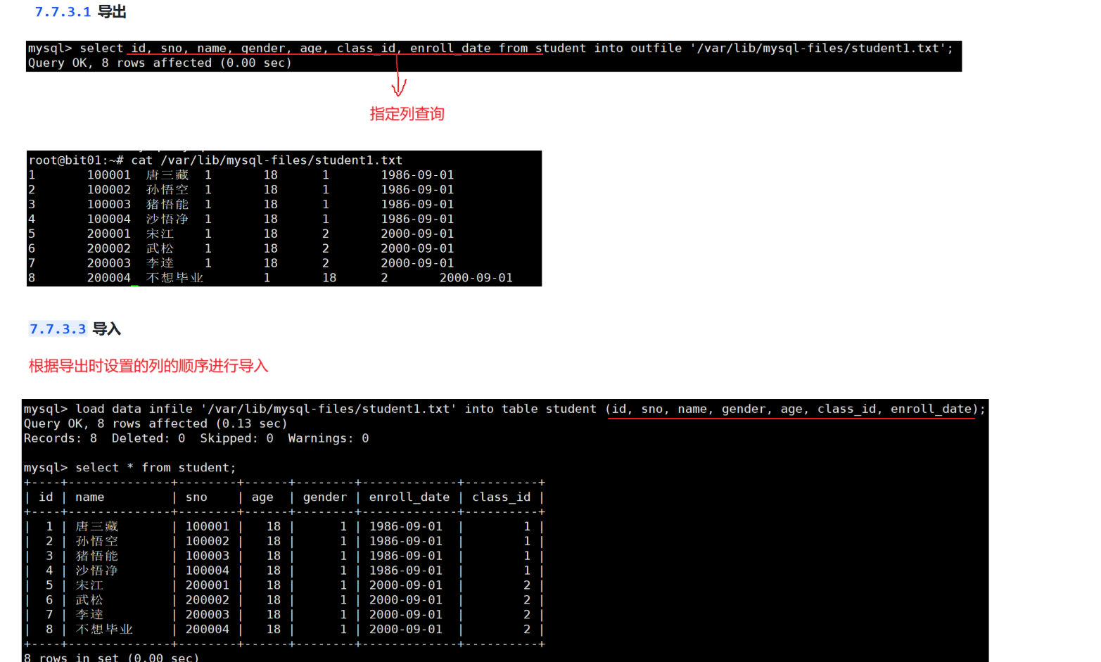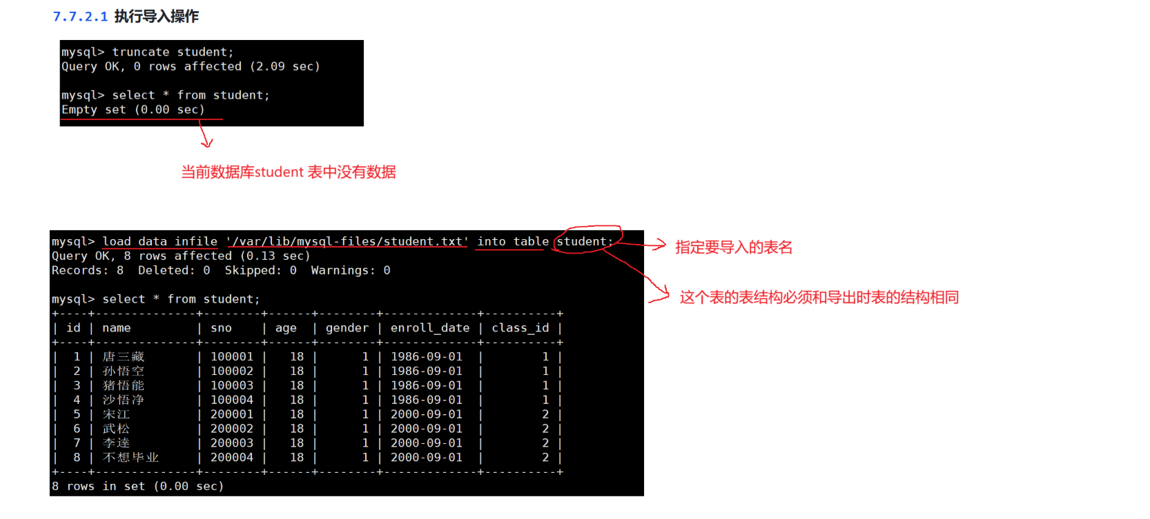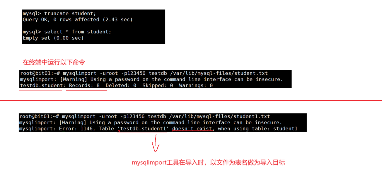 可以看到,如果文件名字和表名字不同,则会导致导入失败,所以我们前面建议导出文件名字和表名字相同