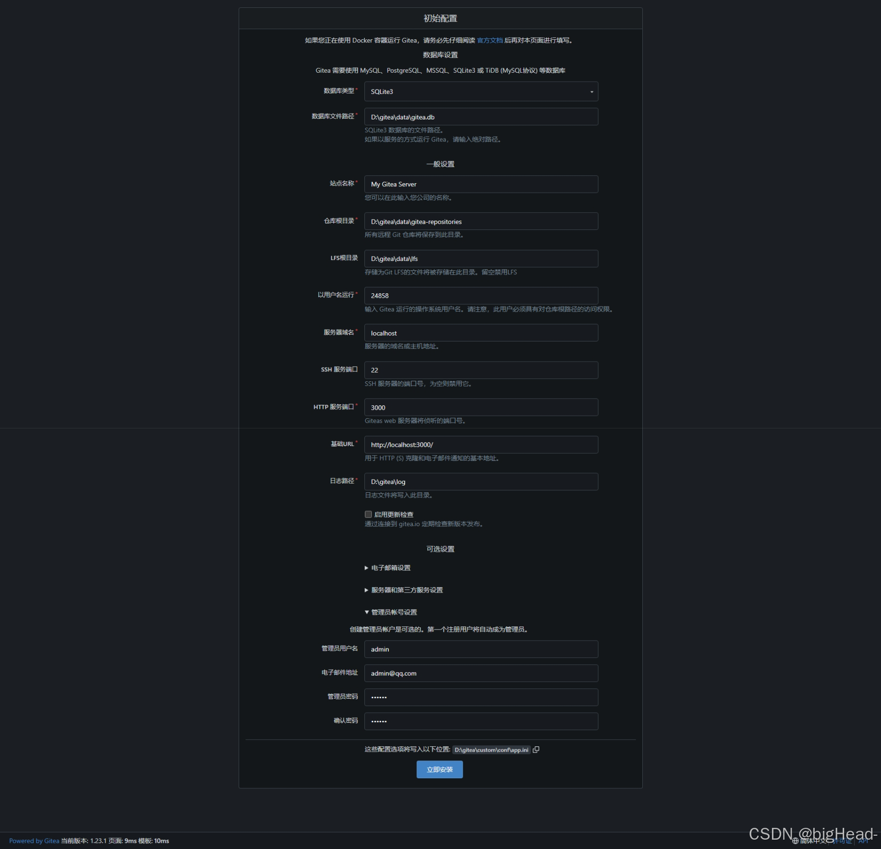 My Gitea Server。 - 管理员账号 :设置用户名、密码和邮箱(如