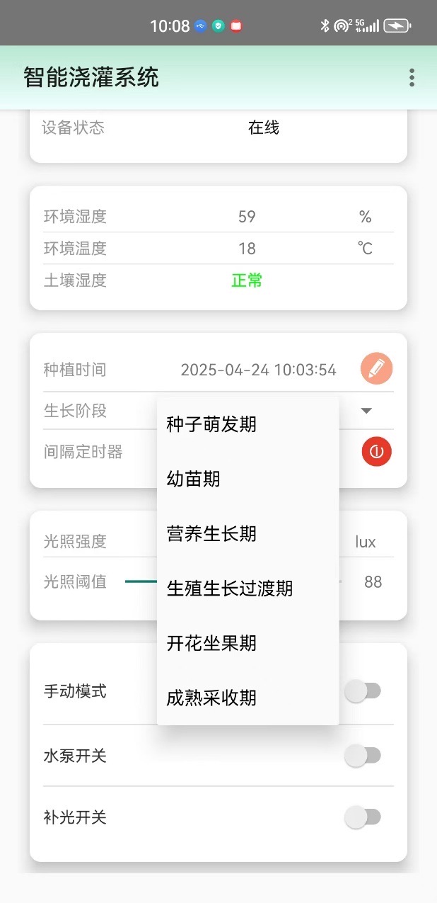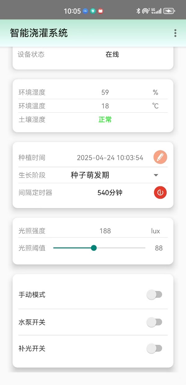 3.手动与自动模式,手动模式可自行控制补光灯和水泵的开关