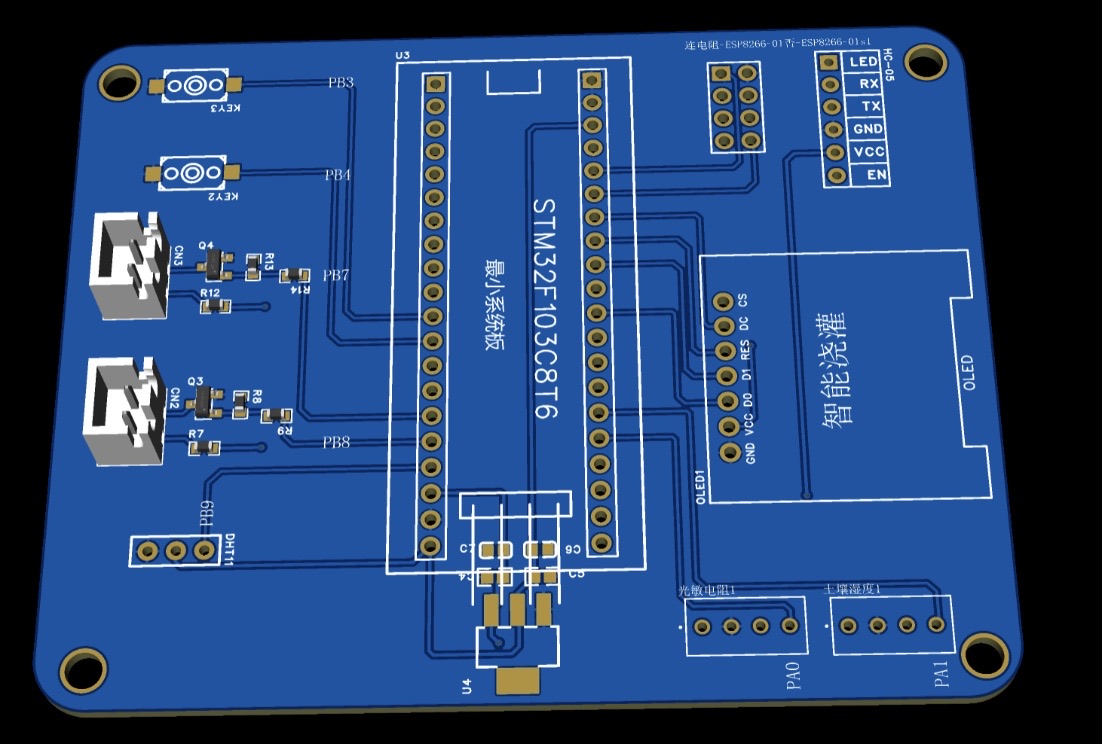 4.通过土壤湿度传感器进行土壤湿度的检测,通过湿度阈值自动进行浇水