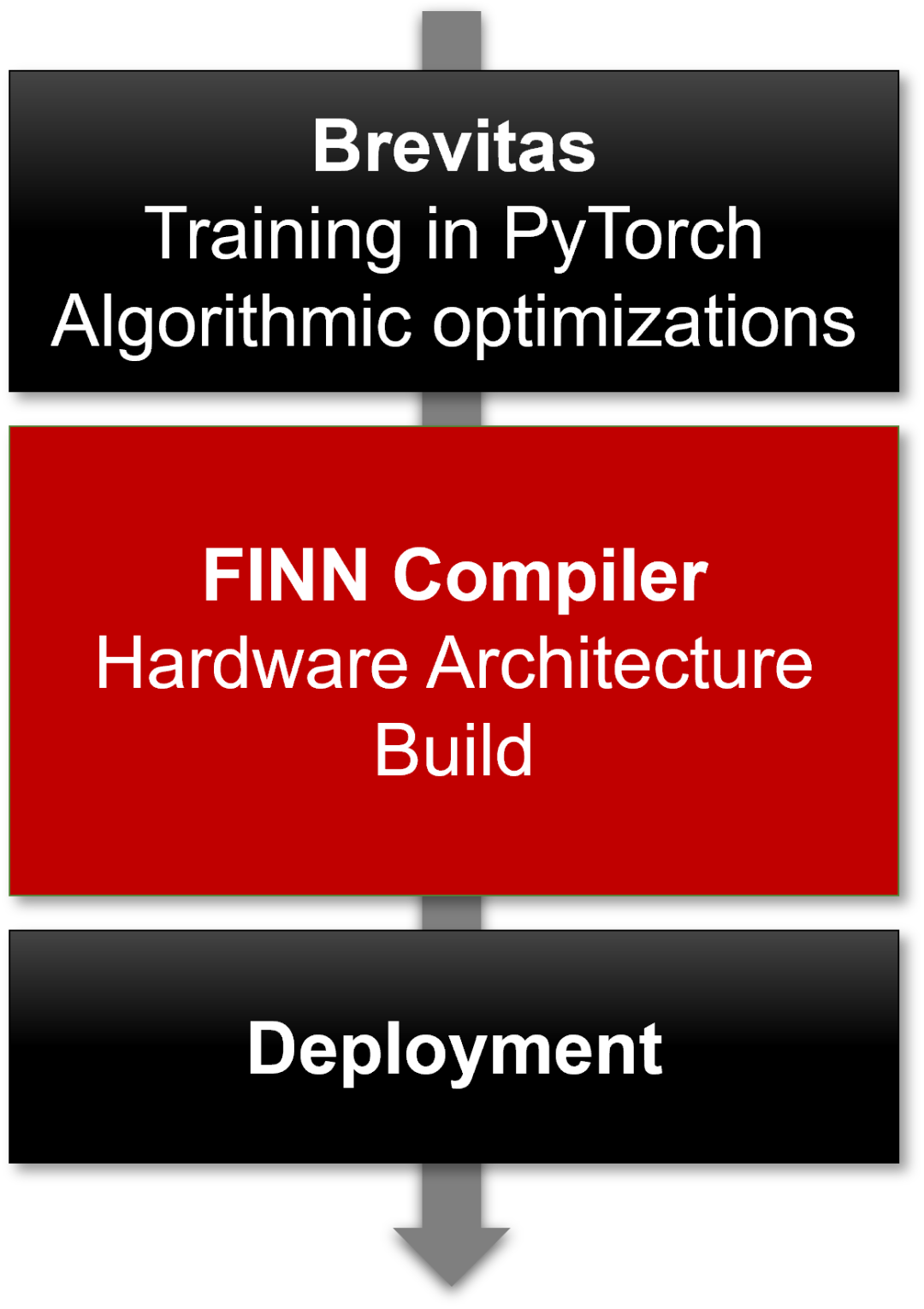 FINN 是一个由 Xilinx(现 AMD Research)集成通信与 AI 实验室开源的机器学习框架,它提供了一个端到端的方案,用于探索和实现 量化神经网络(QNN)在 FPGA 上的高效推理加速器。它不是通用的神经网络加速通用库,而是通过 协同设计(co-design) 和 数据流体系结构生成,为每个网络构建定制的数据流式硬件架构。