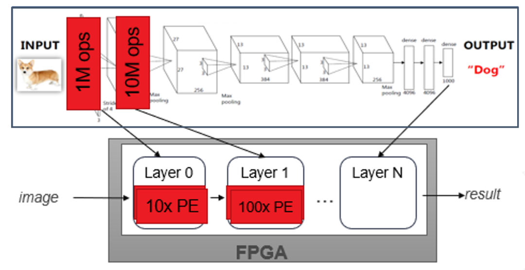 FINN 主要面向量化神经网络,通过构建 数据流架构(dataflow architecture),使每层网络的计算和数据移动都以定制流方式并行执行,因此能够达到 低延迟和高性能 推理效果。