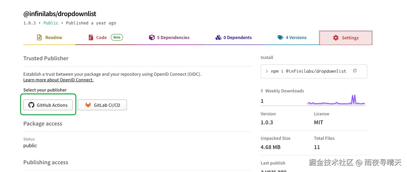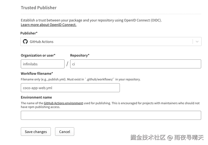 GitHub Actions 会自动用 OIDC 身份和 npm 通信。