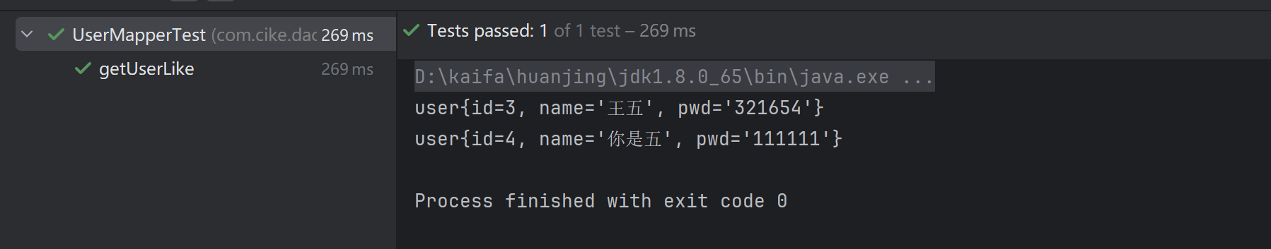 List<user> userList = mapper.getUserLike("%五%");
