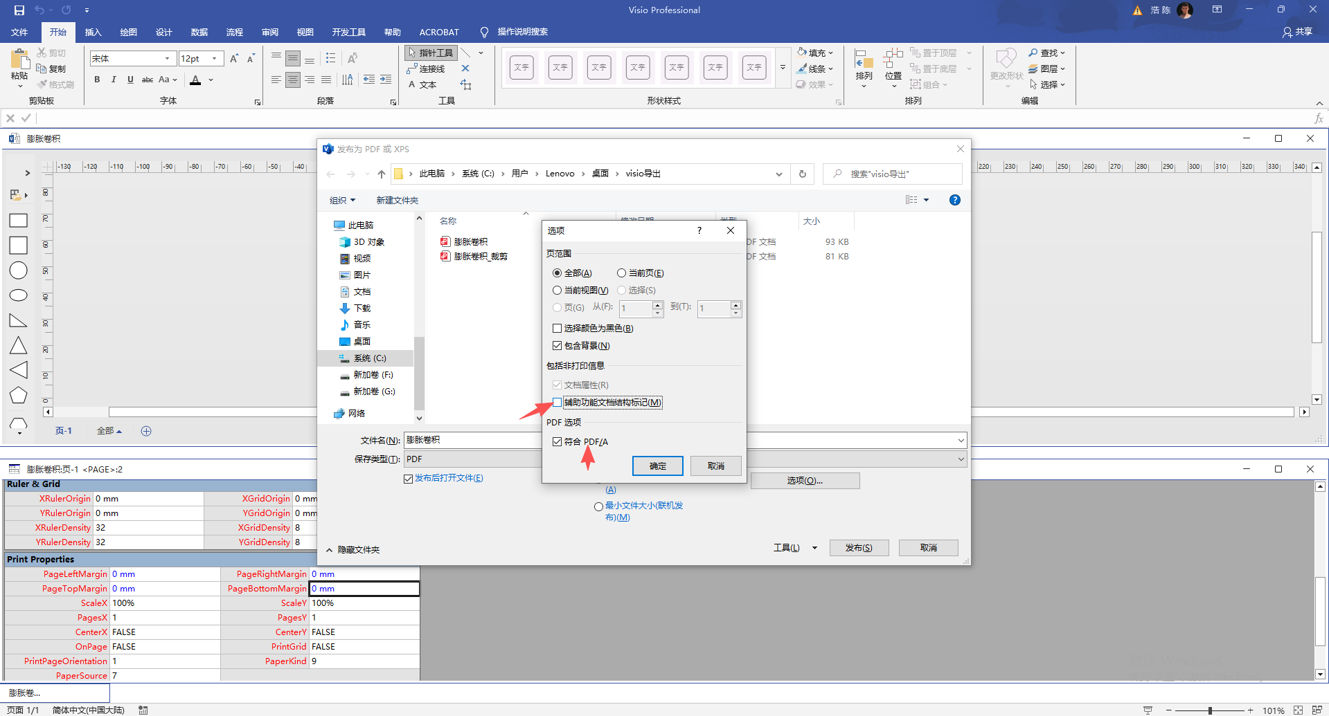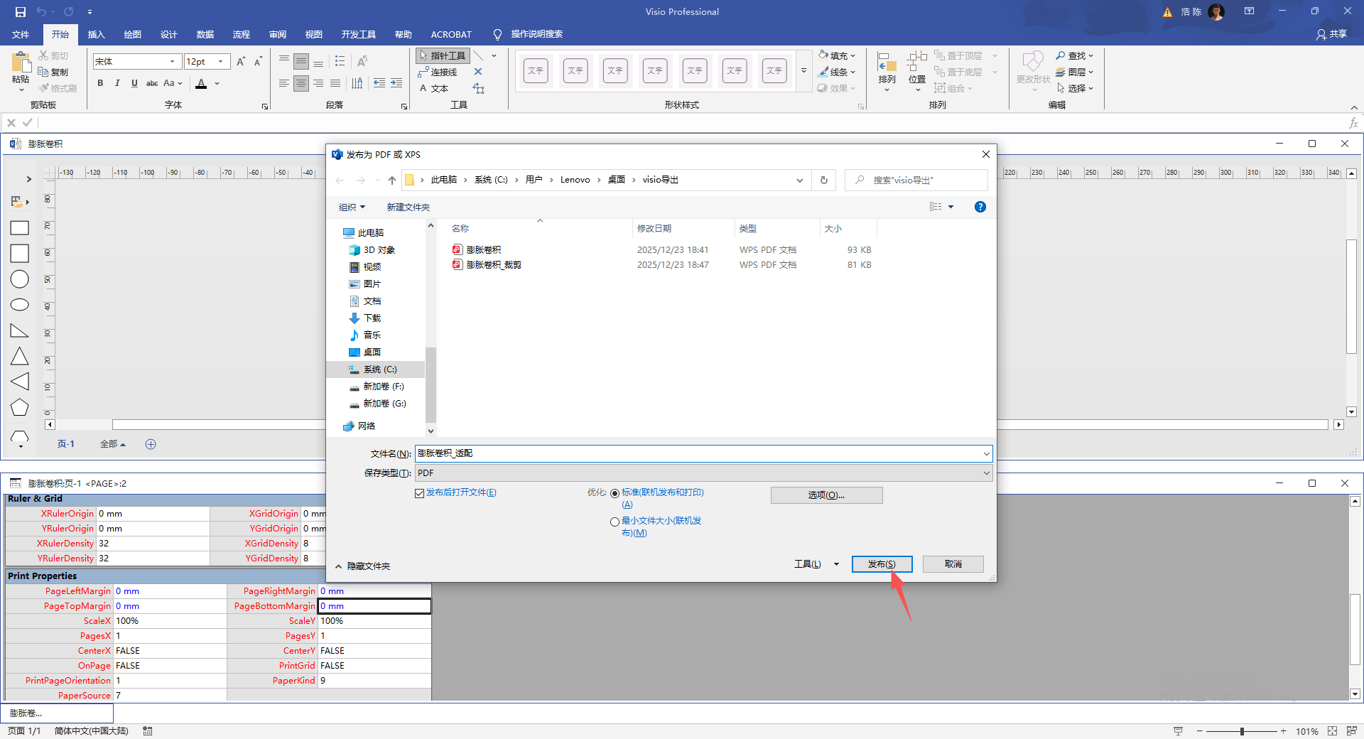 2. Visio贴合目标尺寸大小PDF导出流程