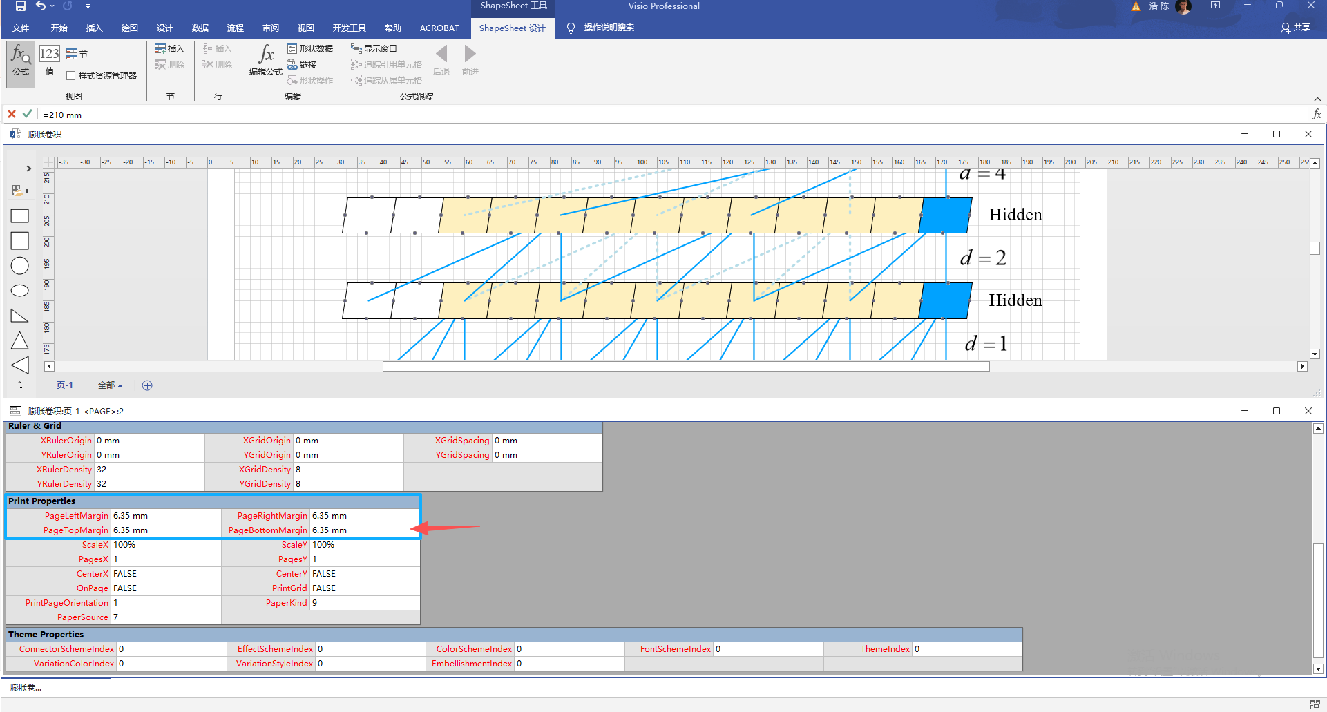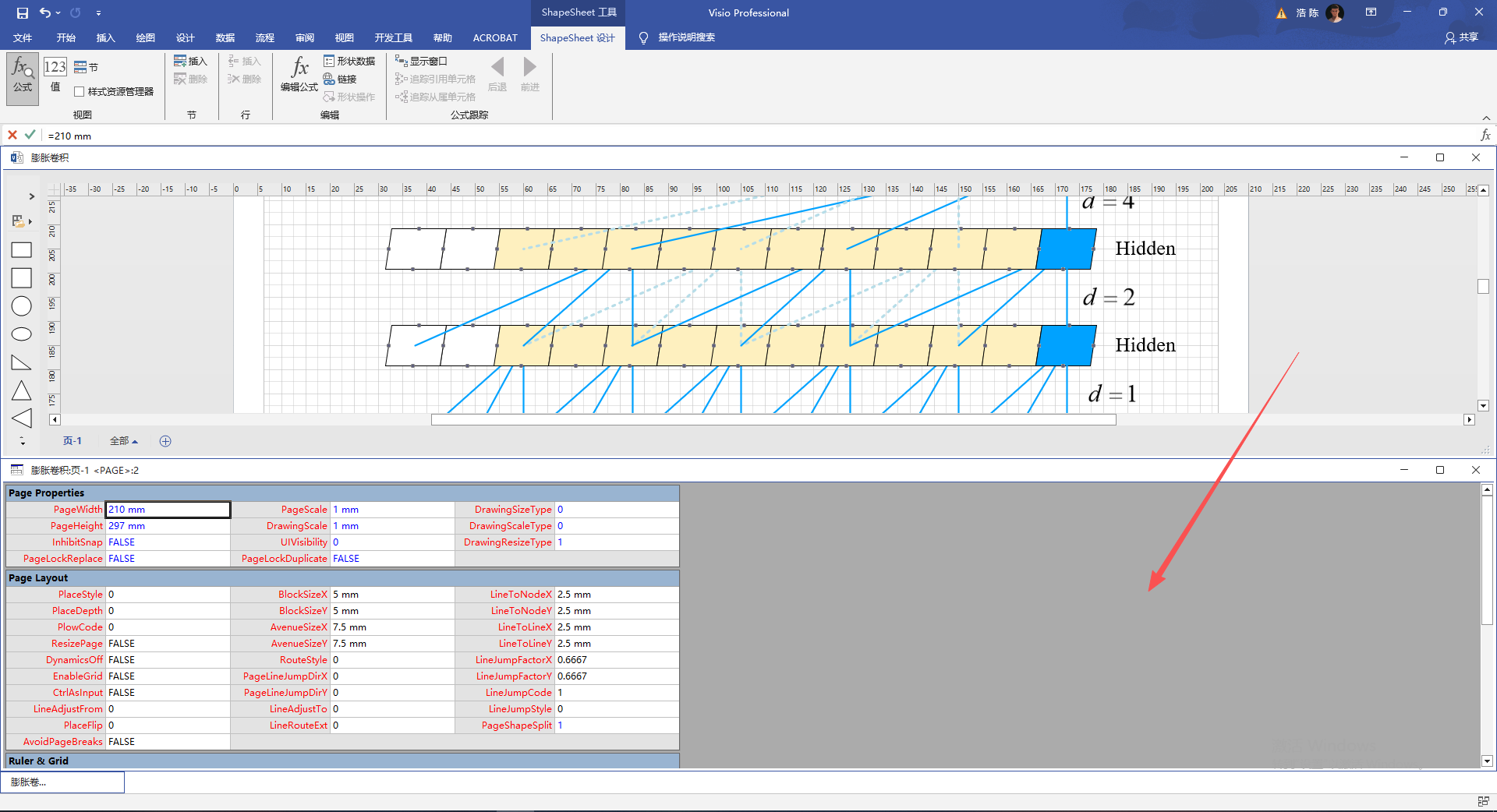 第一步点击选项卡中的,显示ShapeSheet中的页选项。