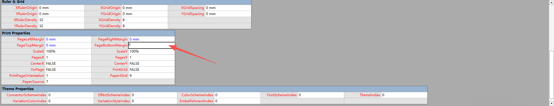 在弹出的PAGE里下滑(下滑才看的到),找到 Print Properties选项,然后将里面的 PageLeftMargin 、PageRightMargin 、PageTopMargin 、PageBottomMargin 从6.35(默认值)全都调成0。