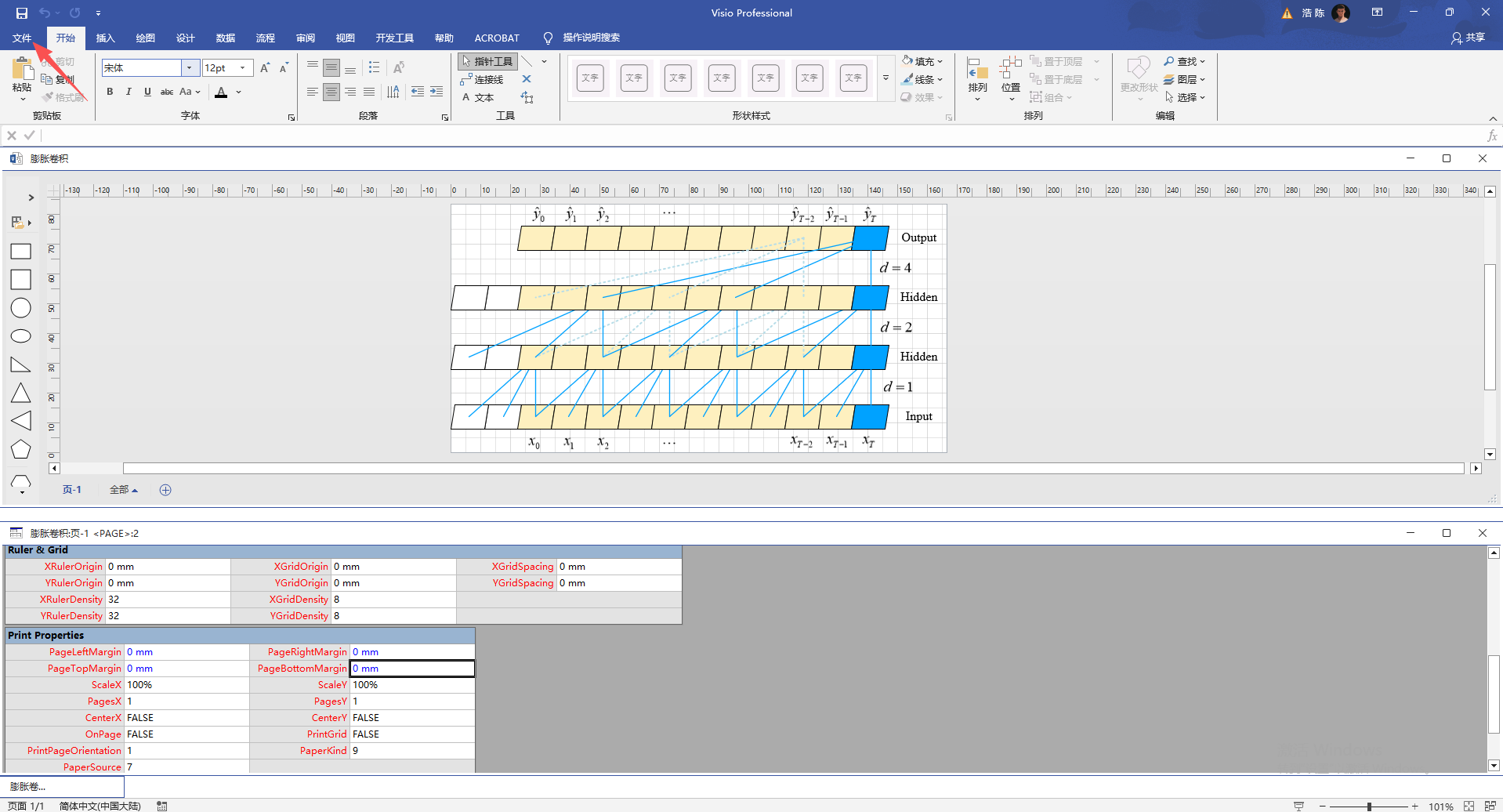 值得注意的是这个属性变化只针对这一个文件,不是针对整个visio软件的