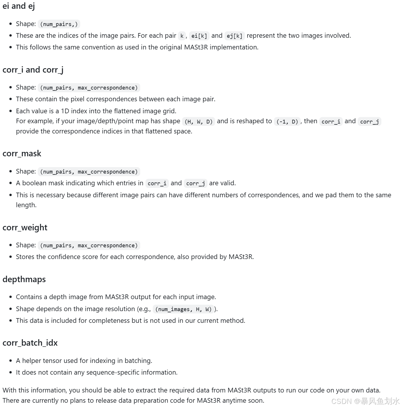 根据作者在github中的回答,其所需的mast3r所需的数据如下,需编写代码生成: