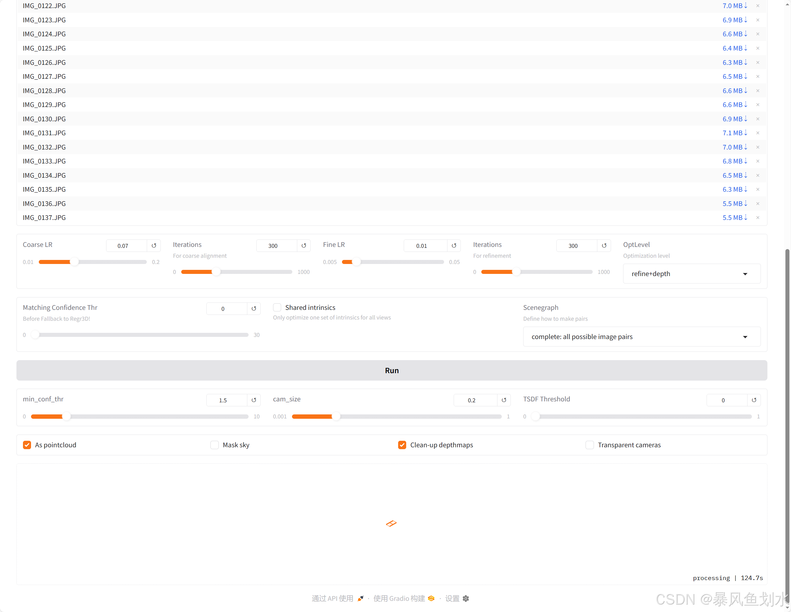 执行:python demo.py --weights ./checkpoints/MASt3R_ViTLarge_BaseDecoder_512_catmlpdpt_metric.pth