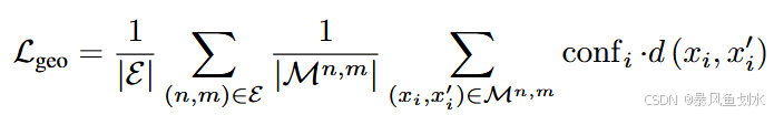 解决方案: 我们提出了一种基于极线距离的无渲染全局几何约束方法。给定由 MASt3R-SfM 得到的图像匹配对应关系 M n , m M_{n,m} Mn,m,我们将损失函数定义为: