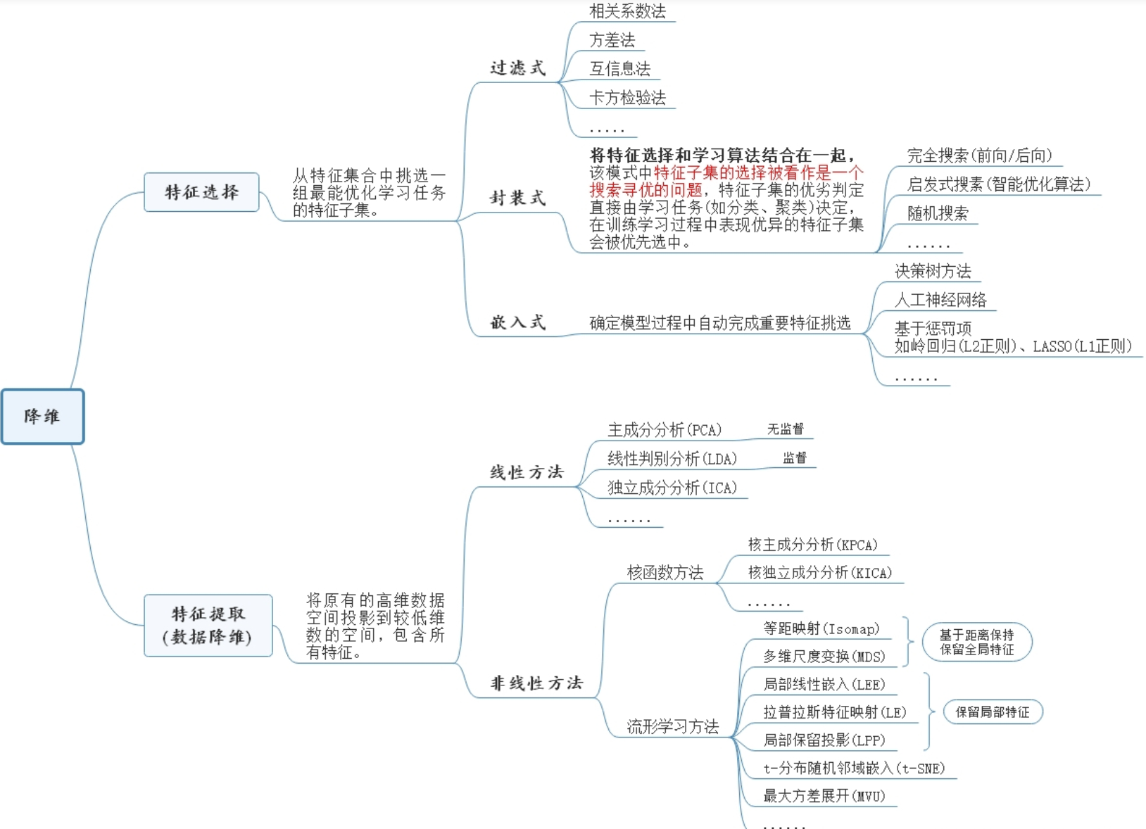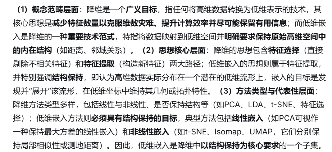 (2)降维和低维嵌入的基本思想和区别
