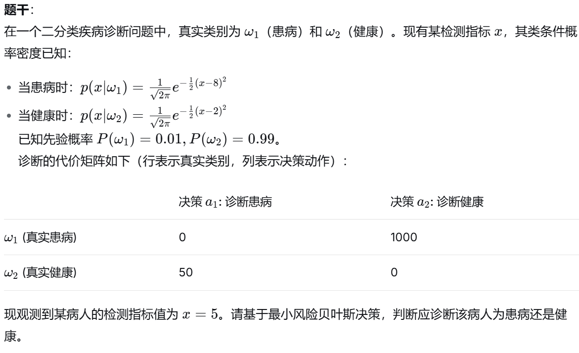 (1)贝叶斯决策论中,最小化分类错误率的决策规则是?