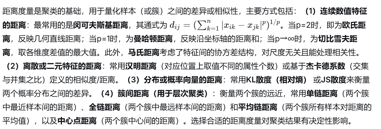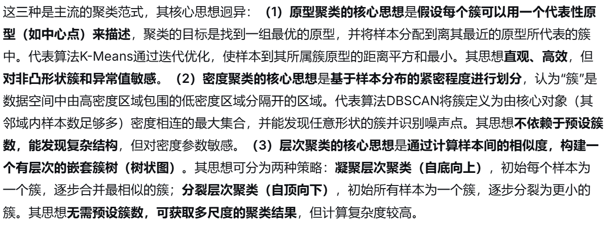 (4)原型聚类、密度聚类与层次聚类的核心思想