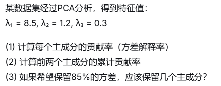 (6)在PCA中,累计贡献率通常达到多少时被认为保留了足够信息?