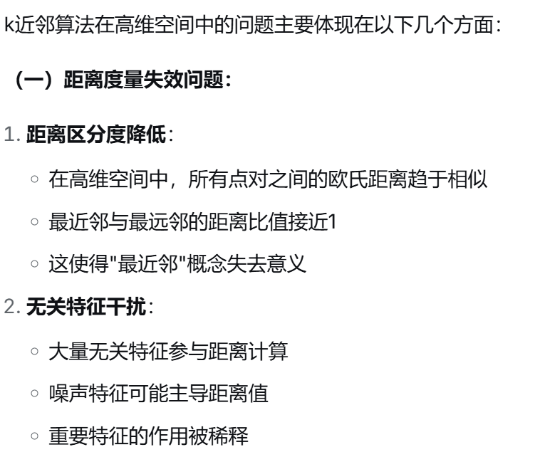 (6)简述k近邻算法在高维空间中的问题。