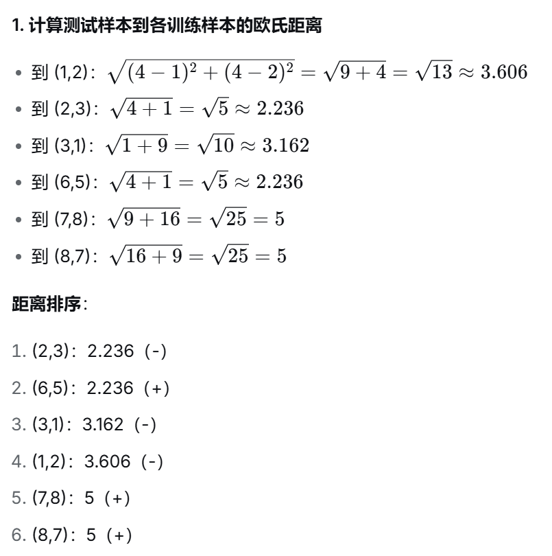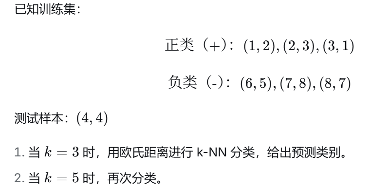 (5)简述k近邻算法的基本步骤。