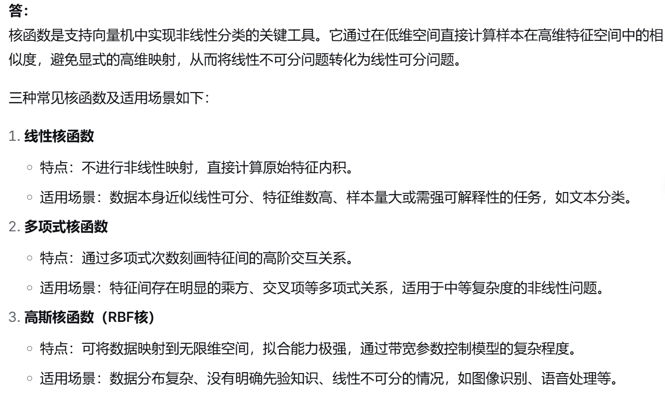 (9)什么是核函数?举例说明三种常见的核函数及其适用场景。