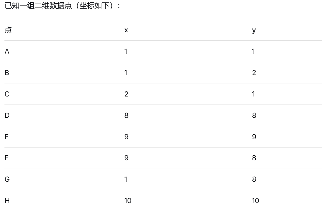 原始数据:每个样本用两个坐标 (x,y) 表示。
