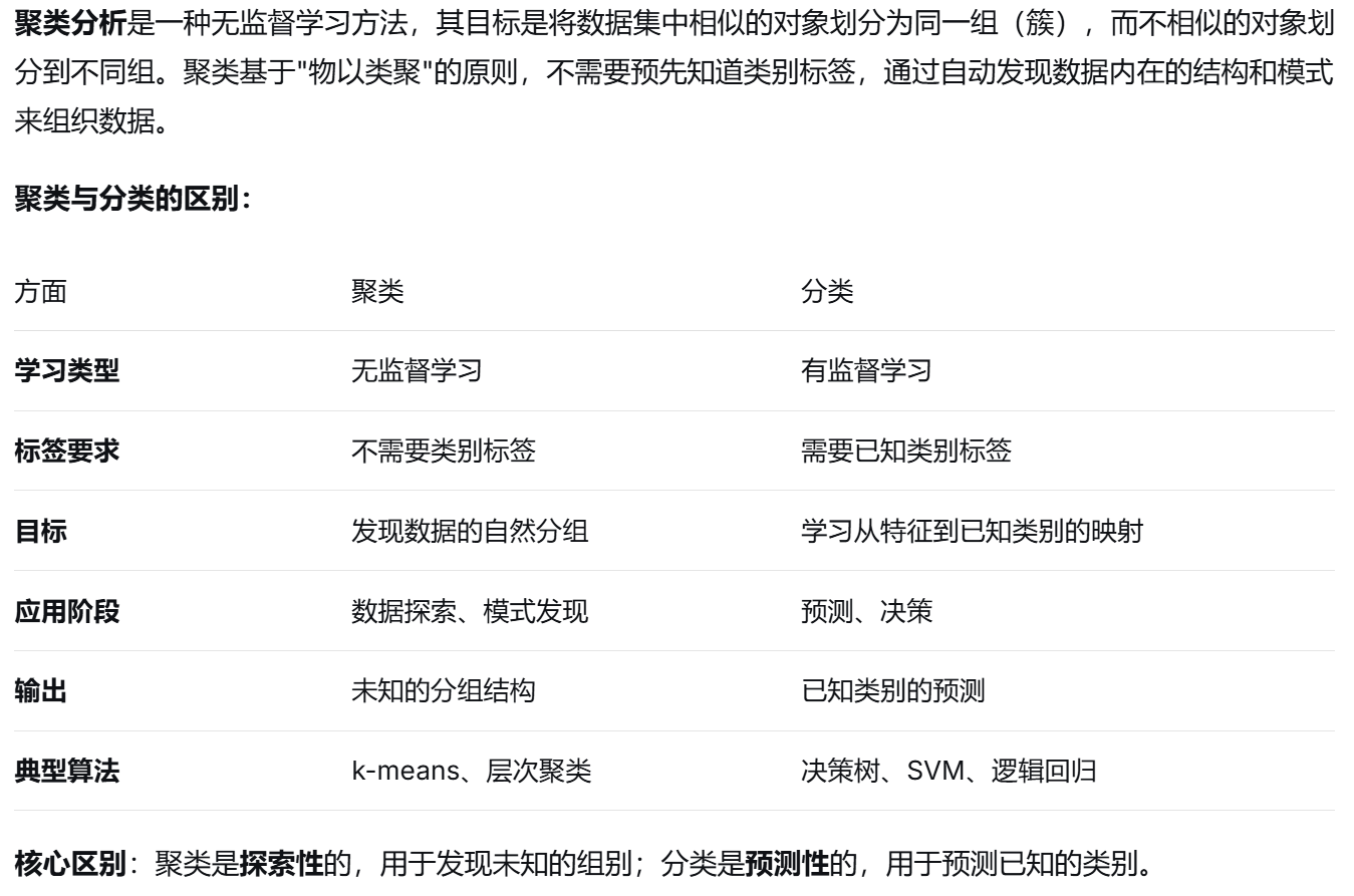 (3)什么是聚类分析?它与分类有何区别?