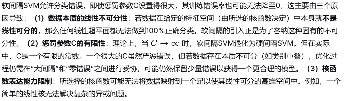 (6)软间隔的错误率不能达到0的原因