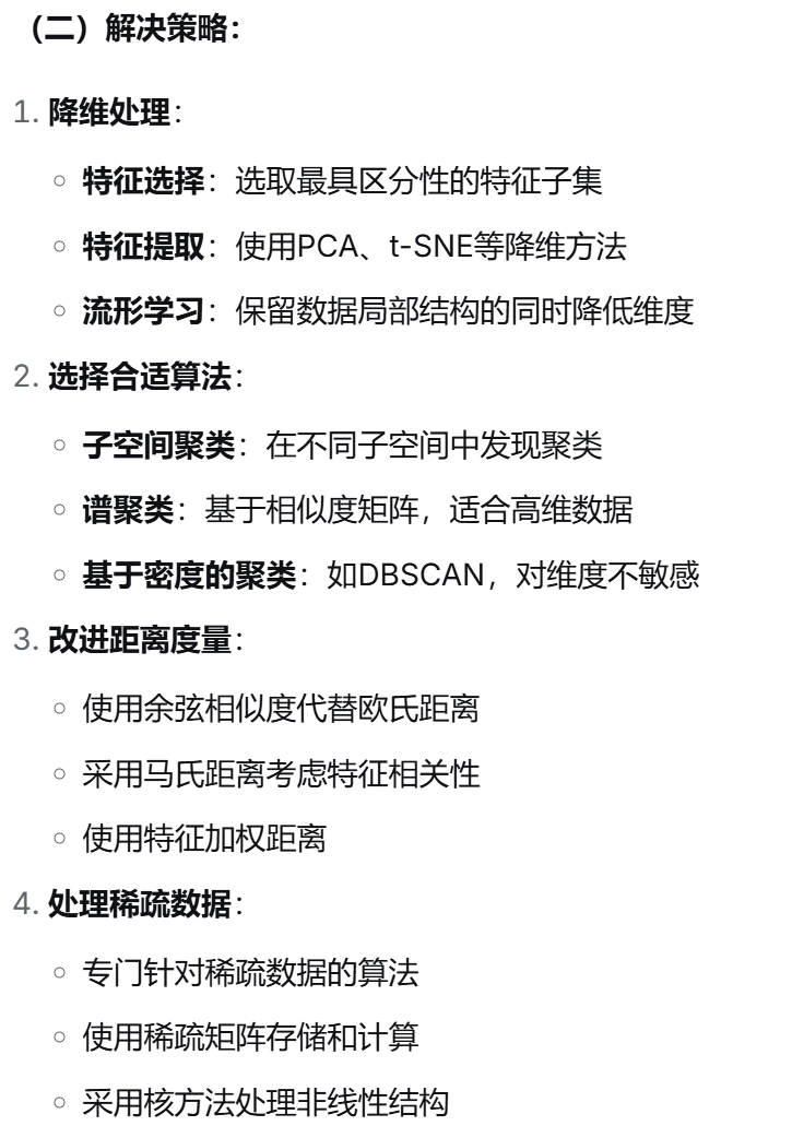 (14)在处理高维数据时,聚类面临什么挑战?如何解决?