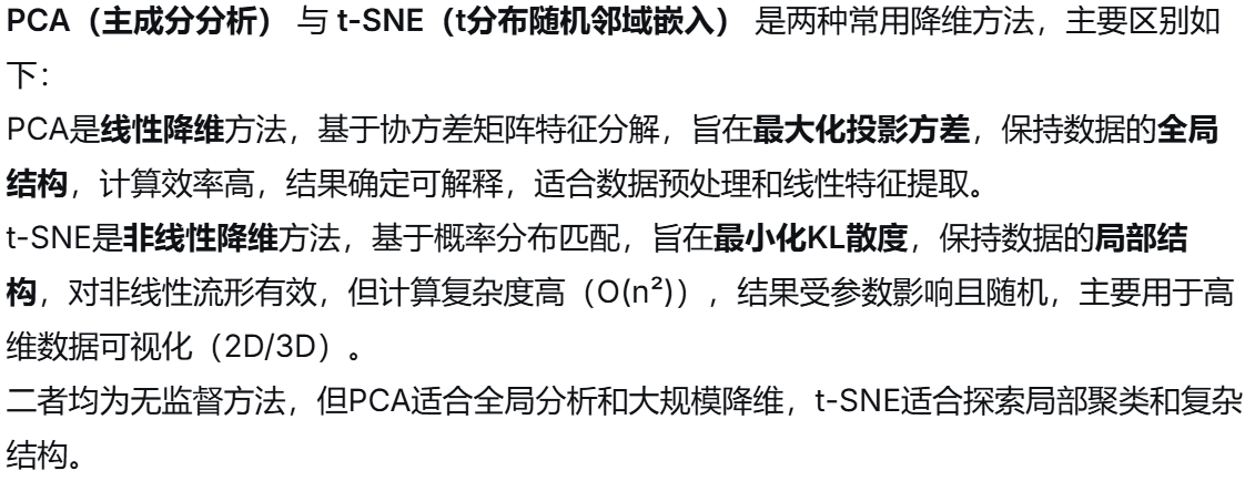 (8)t-SNE与PCA的主要区别在于: