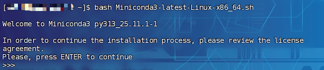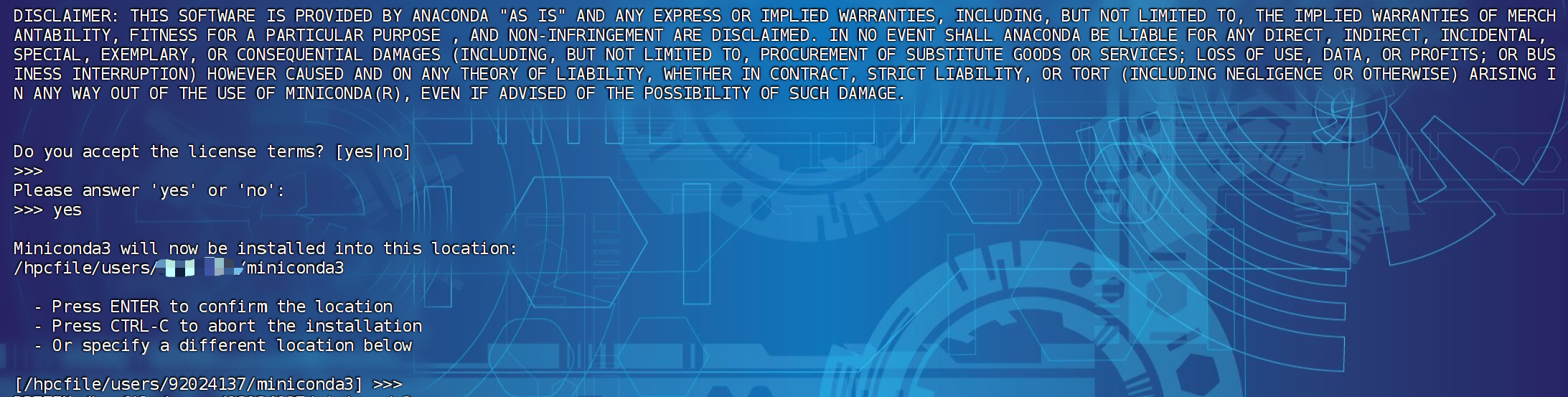 选择 Miniconda 的安装路径,输入回车,使用默认路径