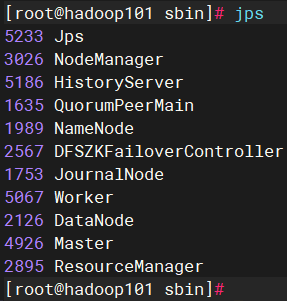 在第一台服务器上,例如 hadoop101 上,启动spark,如下