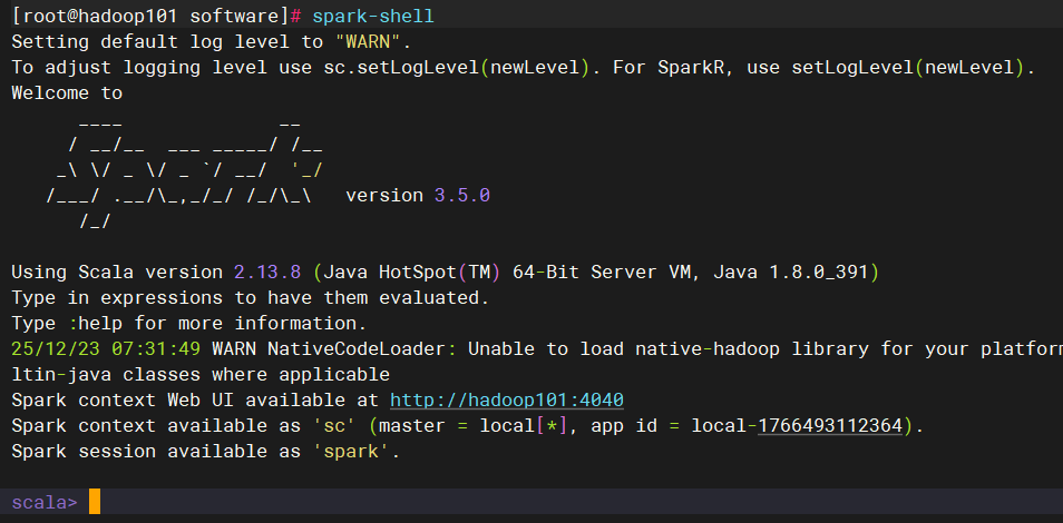 tar -zxvf /opt/spark-3.5.0-bin-hadoop3-scala2.13.tgz -C /usr/local/software