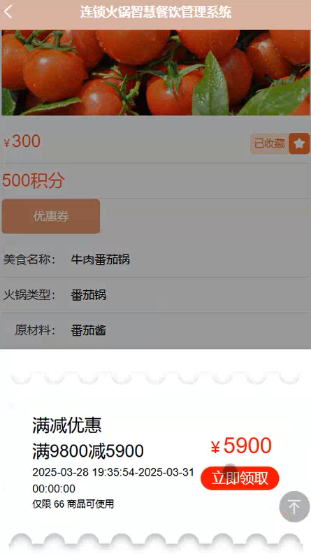 该系统兼具用户价值与企业价值。对顾客而言,小程序提供扫码点餐、自定义锅底配料、预付结账等全流程服务,结合消费偏好数据实现个性化菜品推荐,如根据历史订单推荐"麻辣牛油锅+鲜毛肚+红糖糍粑"组合,提升用餐体验;对连锁企业,系统通过统一管理各门店菜品库、会员体系与营销活动,实现数据实时同步------例如总部可基于全国门店的"番茄锅底"销售数据,动态调整原料采购计划,降低库存成本;同时,系统支持裂变营销功能,如"拼团享8折""分享得优惠券",某连锁品牌测试显示,此类活动可使单店日均客流量提升40%。从行业层面看,该系统推动火锅餐饮从"人工经验驱动"向"数据智能驱动"转型,为传统餐饮的标准化扩张提供可复制的技术范式。