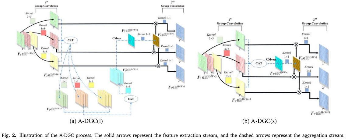 效果 :在128通道输入输出时,A-DGC(s)仅需1281个参数,而DSC需要17536个参数(压缩93%)