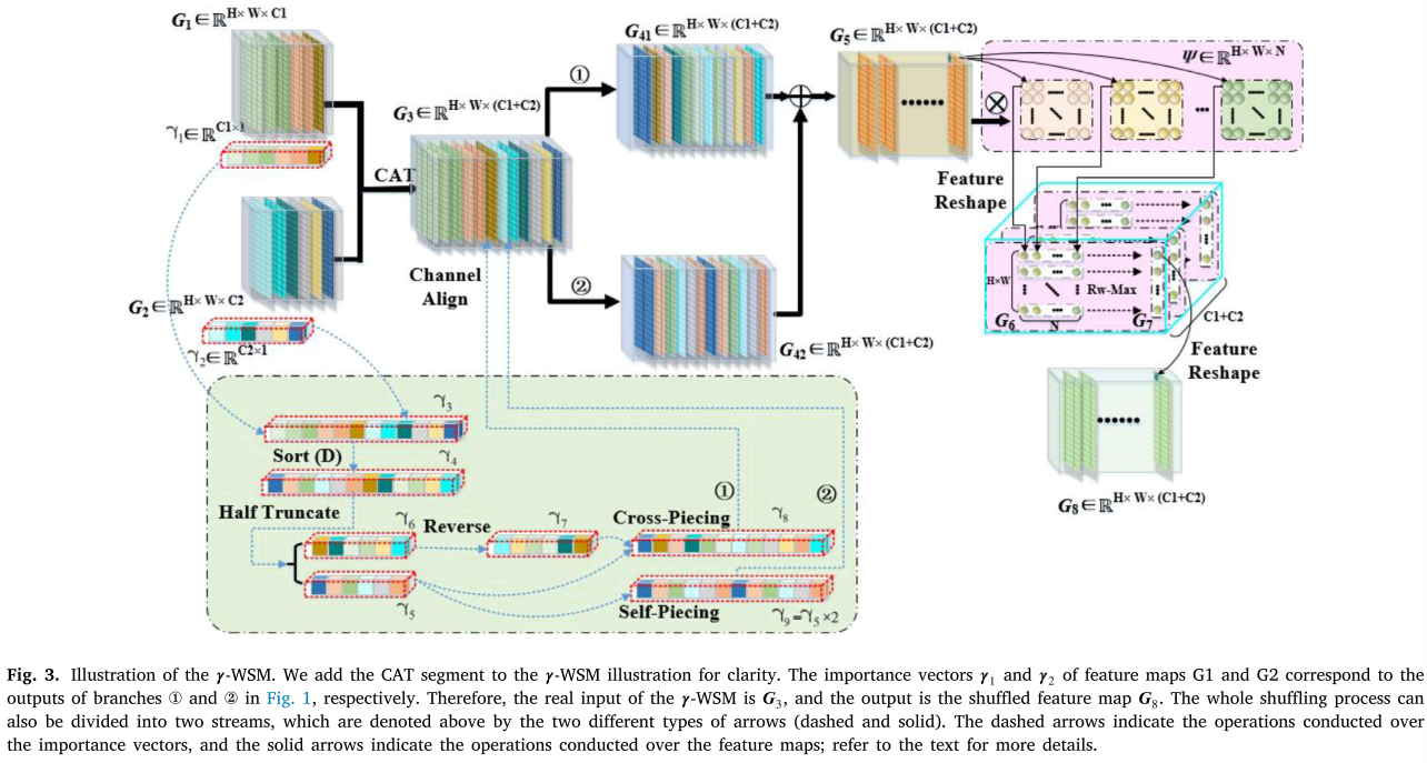 摘要:特征提取网络(FENs)作为许多计算机视觉任务的第一步,起着至关重要的作用。之前关于FENs的研究采用了更深入、更广泛的网络来获得更高的准确性,但他们的方法是内存效率低下和计算密集型的。在这里,我们提出了一种基于ShuffleNetV2的精确、轻量级的可见图像特征提取器(RoShuNet)。所提供的改进有三个方面。为了在不降低特征提取能力的前提下使ShuffleNetV2更加紧凑,我们提出了一个聚合对偶群卷积模块;为了更好地辅助信道互流过程,我们提出了𝜸weighted洗牌模块;为了进一步降低模型的复杂性和大小,我们引入了瘦身策略。分类实验证明了RoShuNet的最先进(SOTA)性能,与ShuffleNetV2相比,它提高了准确率,降低了模型的复杂性和大小。泛化实验证明,该方法同样适用于语义分割和多目标跟踪场景下的特征提取任务,具有与其他方法相当的准确率,且具有更大的内存和更高的计算效率。我们的方法为轻量化模型的设计提供了一个新的视角。