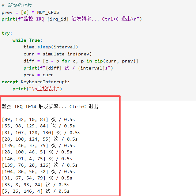 为了观察中断频率,我们编写了一个简单脚本模拟高频推理请求: