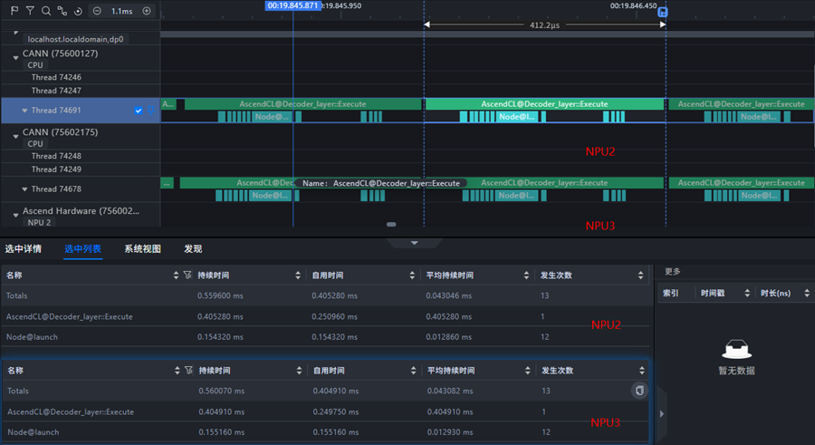 在大模型推理或训练场景中,NPU 与 CPU 间通信极为频繁。 当中断发生在业务线程所在的 CPU 核上时,推理过程会被频繁打断。Profiling 结果通常表现为: