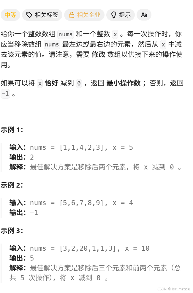1658. 将 x 减到 0 的最小操作数 - 力扣(LeetCode)
