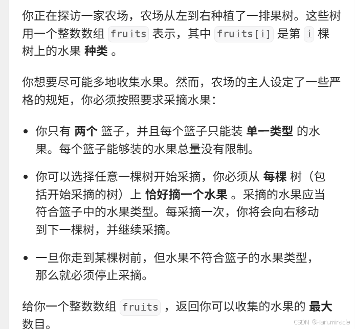 left和right各遍历一次,无重复操作; - 空间复杂度 O (1):HashMap 最多存储 2 种水果的次数,空间消耗固定。