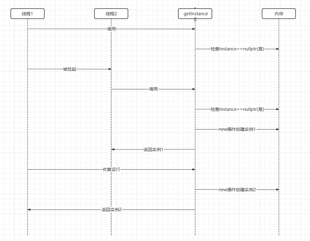 但它的实现复杂度更高:需要通过互斥锁保证线程安全,且需用volatile关键字禁止编译器优化(避免CPU指令重排导致的"实例地址已赋值但构造未完成"问题),确保多线程环境下的内存可见性。此外,第一次访问时的实例创建会产生一定性能开销(主要来自锁竞争和实例构造),且若忘记手动销毁实例,可能导致内存泄漏(不过这一问题可通过智能指针优化)。
