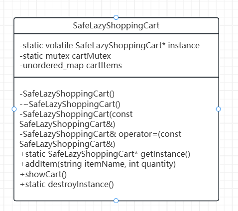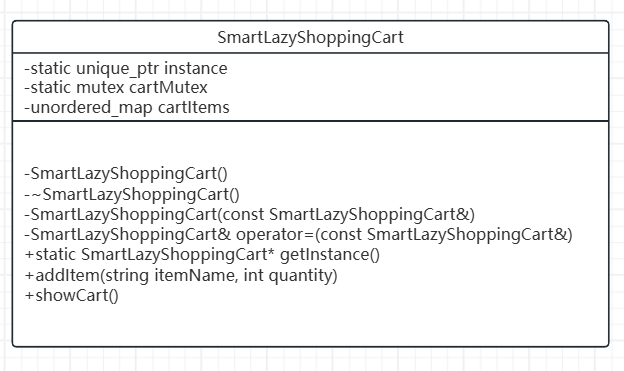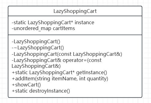 以小明的购物车为例,饿汉式单例类的UML结构如下: