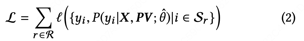 然而,对于学到一个好的打分函数而言,xi 并不够。我们发现,推荐系统中的排序应该考虑下面的一些额外信息:(a)item-pairs间的相互影响;(b)用户和items之间的交互。item-pairs之间的相互影响能够直接从初始列表Sr中学得,其中Sr是已有的LTR模型为请求r生成的结果列表。已有工作提出了一些方法来充分利用item-pairs之间交互信息。然而,几乎没有研究考虑用户和items之间的交互。item-pairs交互的影响程度在用户间是千变万化的。在本文中,我们引入一个个性化矩阵PV来学习用户指定的编码函数,使得这个函数有能力建模item-pairs间的个性化相互影响。该模型的损失函数如下:
