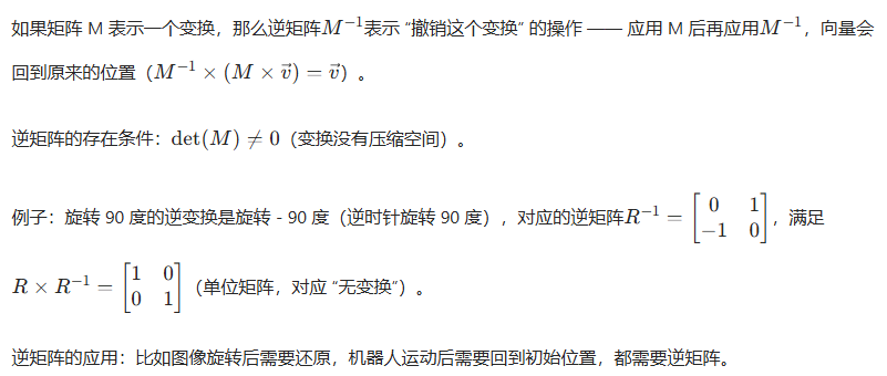 - 机器人学:机械臂的每个关节旋转都对应一个矩阵,复合矩阵能计算末端执行器的位置,逆矩阵用于路径规划;