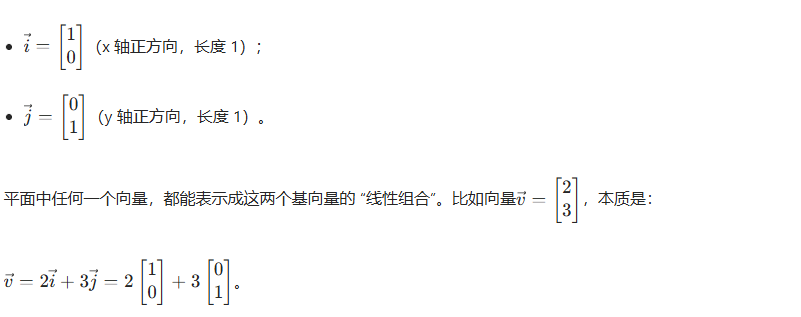 空间的 "基向量",是构建空间的 "基本单位"。比如 2D 平面,我们最熟悉的基向量是: