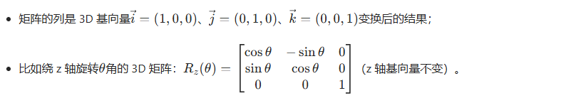 3D 空间的线性变换(旋转、缩放、剪切),用 3×3 矩阵表示,核心逻辑和 2D 一致: