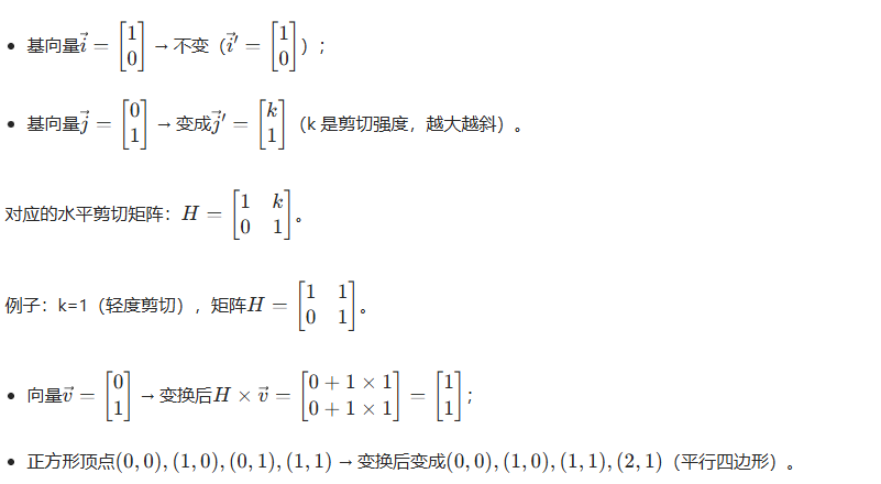 目标:把 2D 平面的向量 "斜着拉",比如 x 方向随 y 变化(水平剪切)。