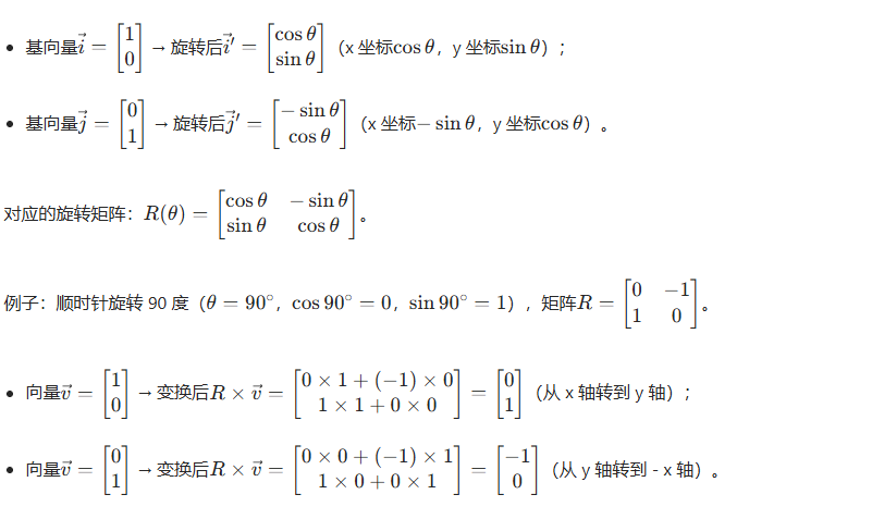 这正是我们日常看到的 "旋转" 效果 ------ 矩阵用三角函数编码了旋转的角度。