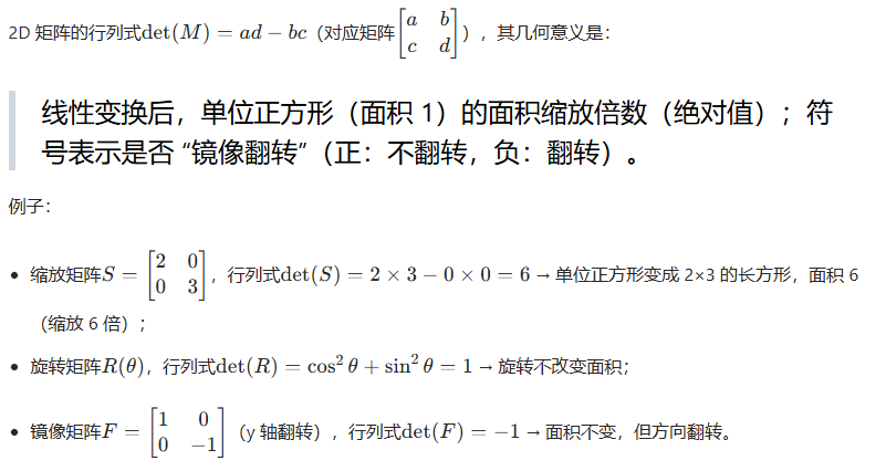 1. 行列式:变换的 "面积 / 体积缩放因子"