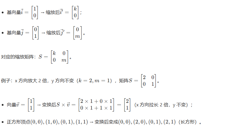 目标:把 2D 平面的所有向量,x 方向缩放k倍,y 方向缩放m倍。