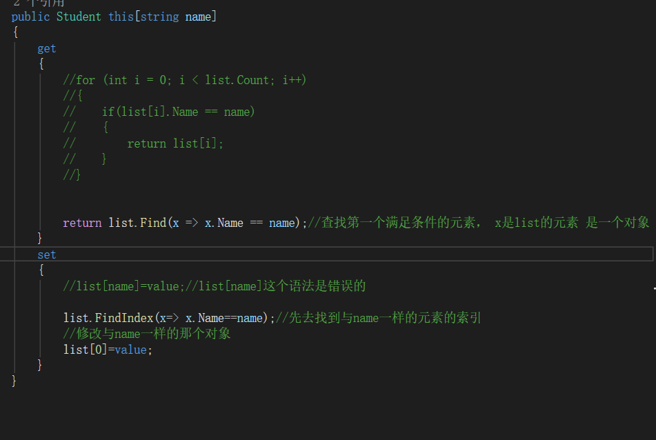 Console.WriteLine(cs["余伟"].Name);//arr[""]进行获取